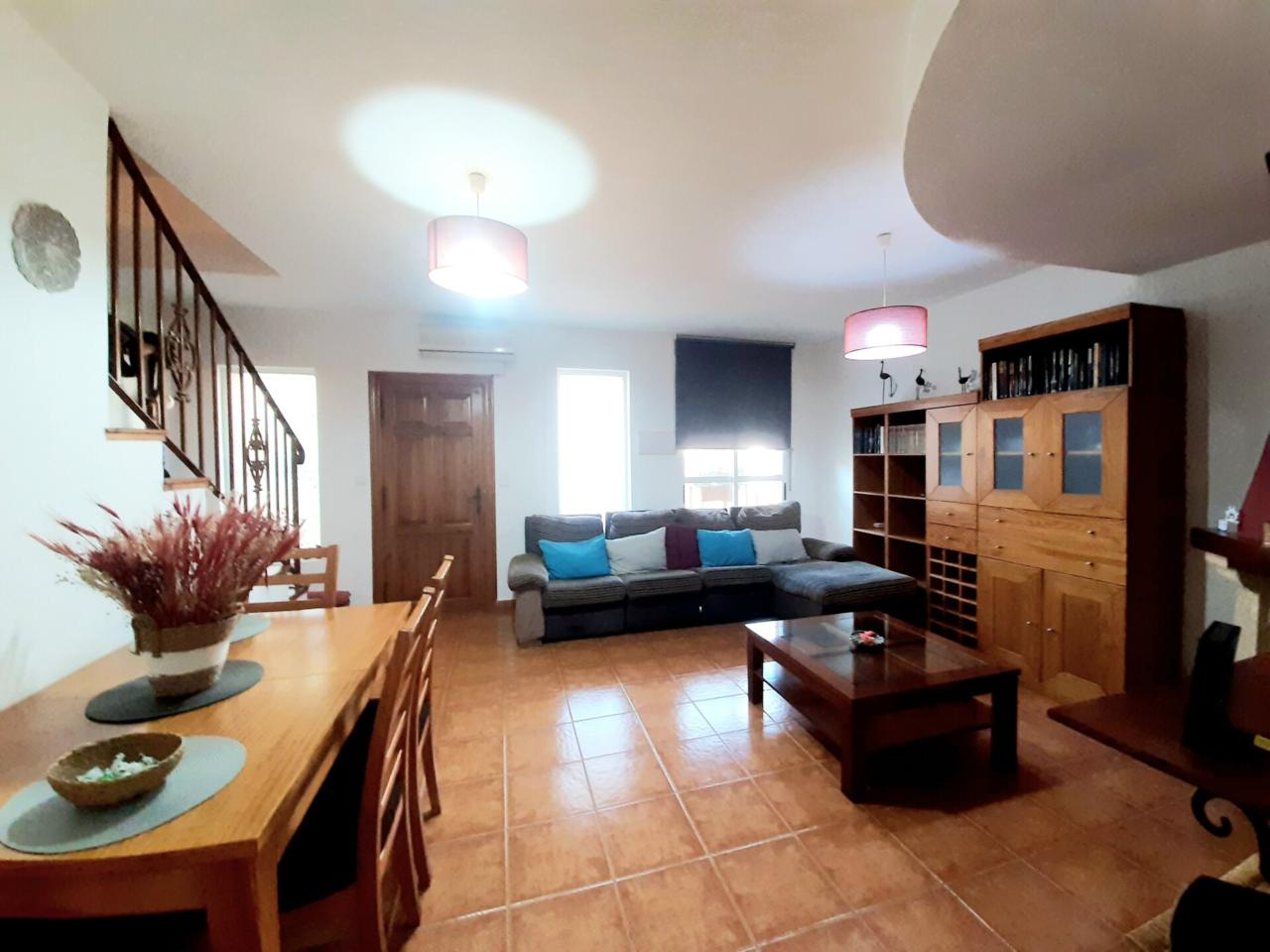 DescripciónSe vende estupendo dúplex de 205 m2, en la urbanización de La Paira de Villanueva Del Río Segura. Situado en una zona residencial, tranquila y familiar, se distribuye en semisótano, dos plantas y terraza. En primera planta encontramos un amplio salón comedor con chimenea de leña, un baño con píe de ducha, habitación doble con ventana hacia el patio, espaciosa cocina totalmente amueblada con lavadero independiente y un bonito patio interior con barbacoa. La primera planta se distribuye en un baño completo y tres dormitorios dobles, el de matrimonio cuenta con armario vestidor y cuarto de baño privado con bañera de hidromasaje. En segunda planta tenemos un descansillo, perfecto como zona de juegos o ideal como pequeño despacho y una terraza solarium con bonitas vistas a la sierra de Ricote. El inmueble se encuentra en perfectas condiciones y se vende amueblado.
